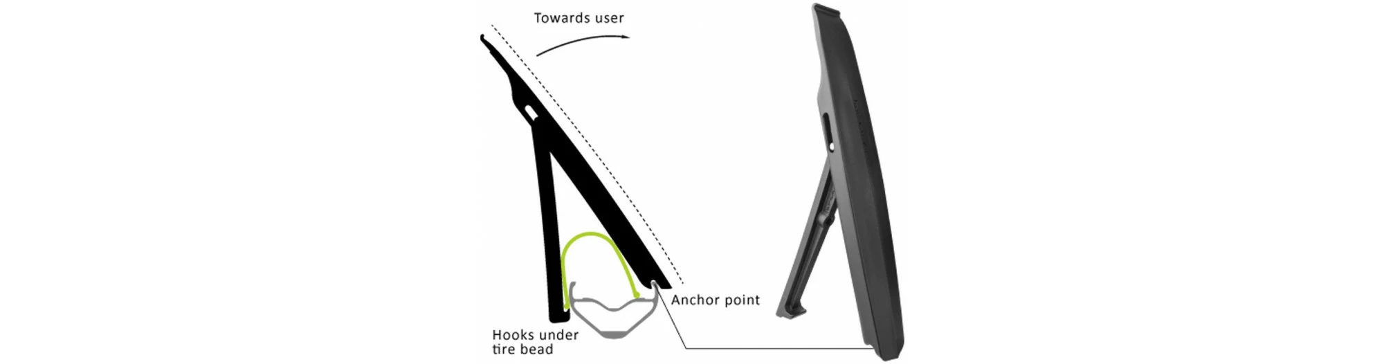 Le Wedge Wedge II est un levier de pneu qui combine les fonctions de démontage et de montage des pneus, particulièrement utile pour les pneus sans chambre à air. Le crochet saisit et soulève le talon du pneu par-dessus la jante, ce qui facilite l’opération dans les espaces restreints.