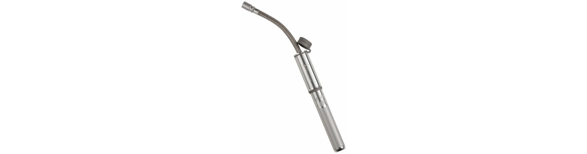 Pompe d’excellente qualité pour vélo de route, avec un volume de cylindre réduit, pour les pneus nécessitant une pression élevée.