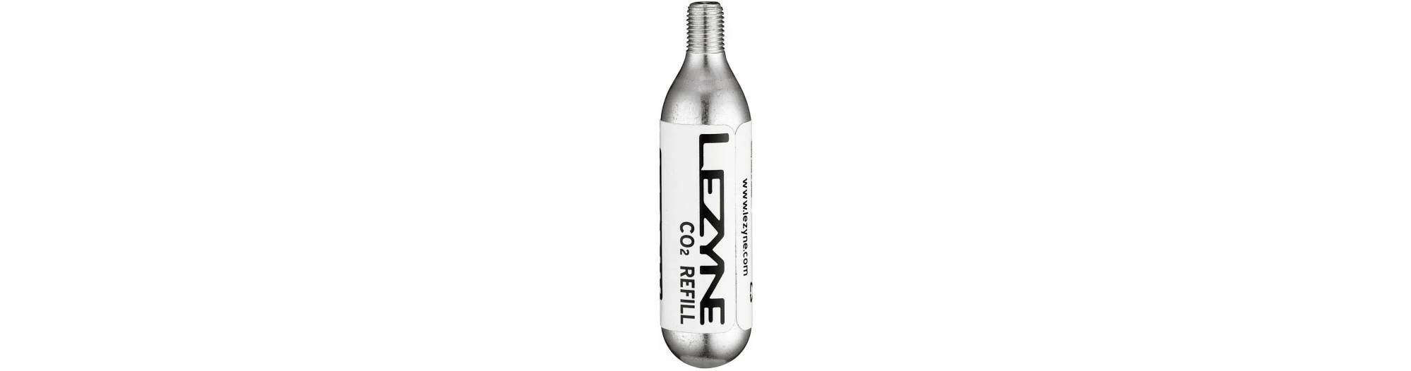 Cartouches de CO2 filetées à utiliser avec tous les gonfleurs de CO2 Lezyne. Les cartouches de CO2 de 16 g sont compactes et conviennent aux pneus haute pression.