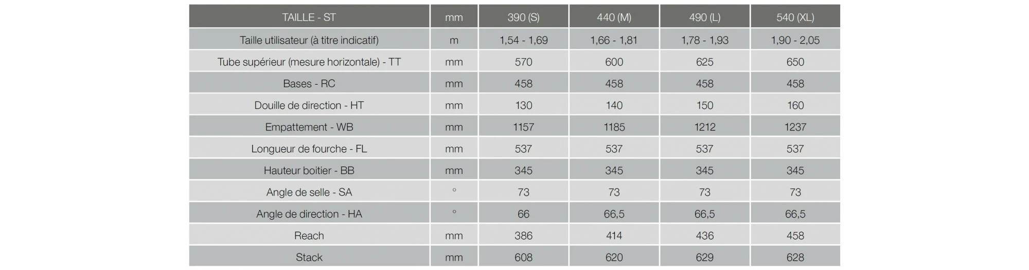Taille M: 380mm / 125mm de débattement