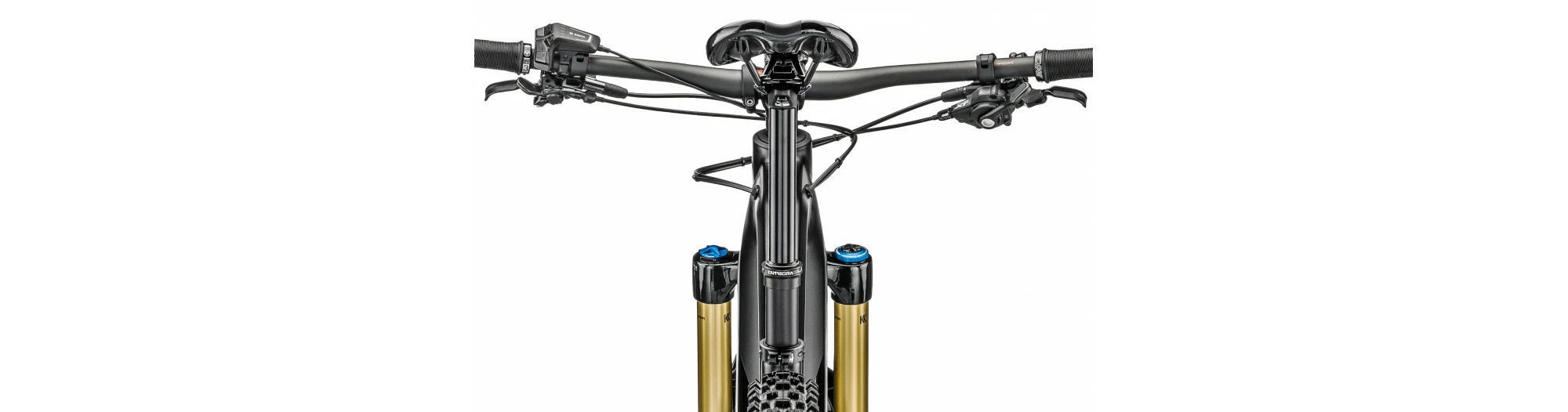 - KS Lev Integra à cartouche avec commande déportée au guidon. Longueurs de débattement allant de 125 à 200 mm pour s’adapter à la taille du pratiquant.