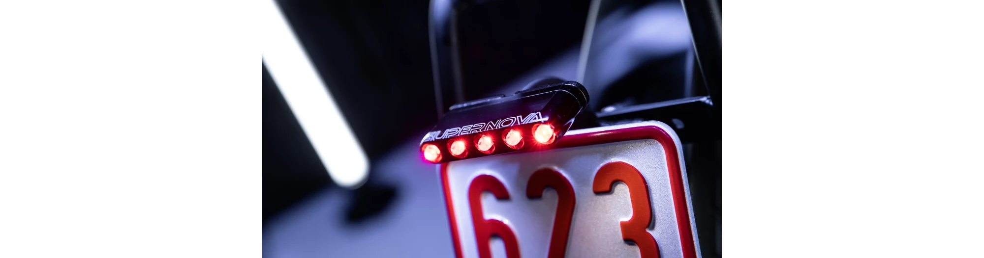 Le SUPERNOVA M99 TAIL LIGHT 45 est le premier feu arrière pour E-bikes rapides avec feu de freinage et feu de plaque d’immatriculation intégrés. Auparavant, il fallait jusqu’à trois feux pour couvrir toutes ces fonctions. Avec cette nouvelle génération de feux arrière, tout est encapsulé dans un boîtier en aluminium élégant et étanche et peut être fixé de manière élégante sur un vélo. Cinq diodes électroluminescentes très efficaces rendent la bicyclette électrique rapide clairement visible de loin et de côté. Le feu de freinage brille avec une luminosité cinq fois supérieure à celle d’un feu arrière standard, ne consomme que 0,9 watts et avertit de manière fiable le trafic suivant. L’éclairage homogène de la plaque d’immatriculation est intégré discrètement dans la partie inférieure du boîtier élégant.