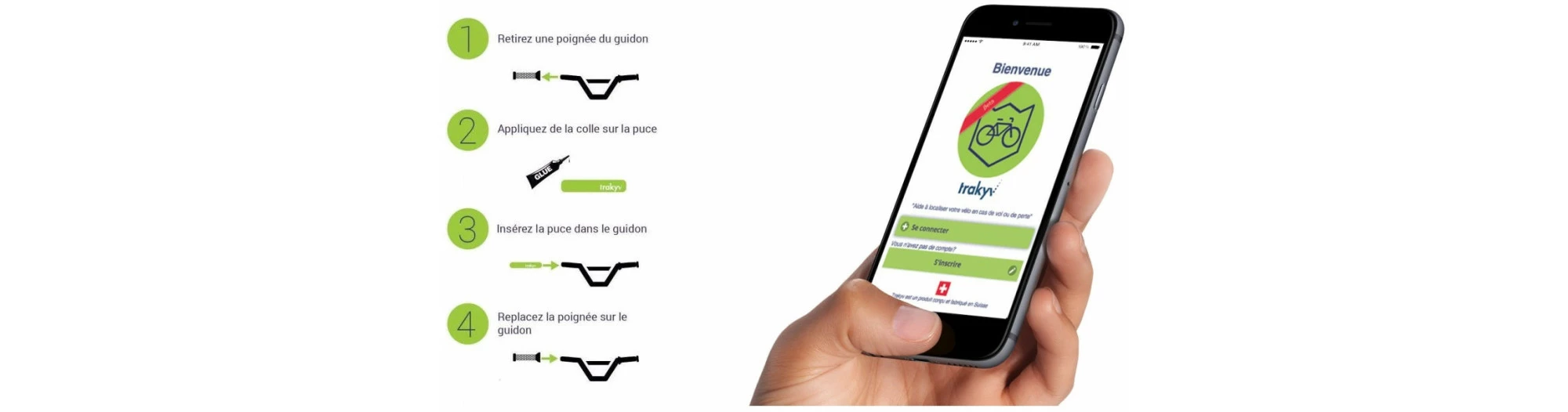 Trakyv est une puce micro-émetteur qui se colle à l’intérieur de votre guidon avec une pointe de super-glue. Il n’est pas nécessaire de la recharger, car celle-ci tient une dizaine d’années.